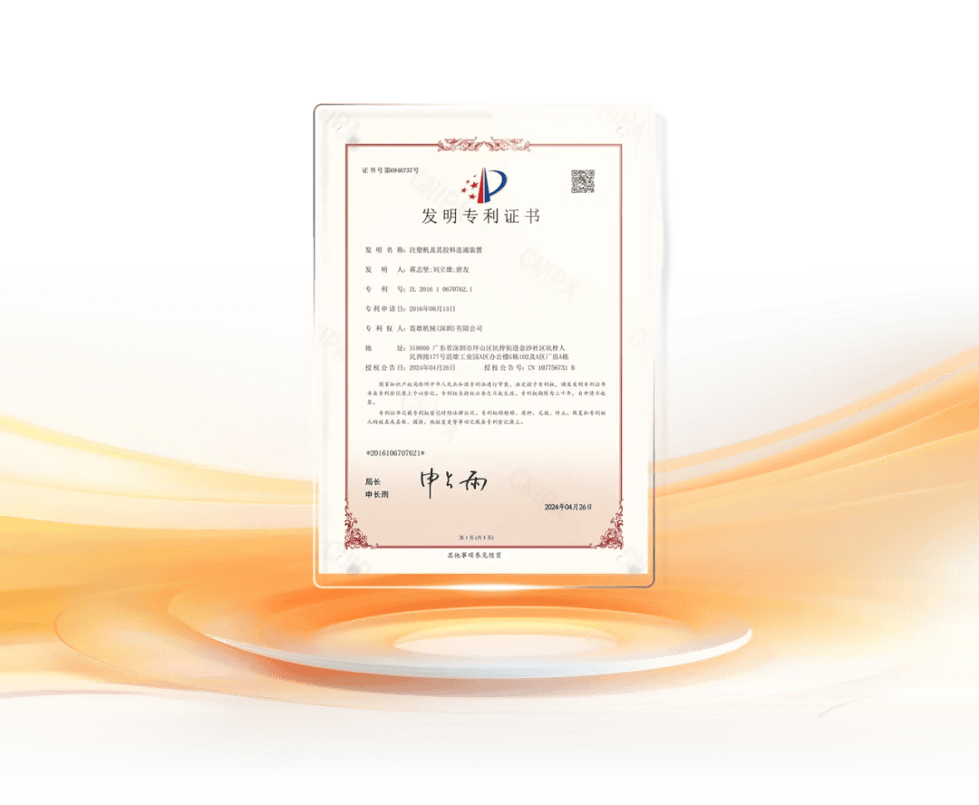 近日,由震雄集团旗下公司申请的一件专利《注塑机及其胶料连通装置》,经国家知识产权局审核批准,获得国家发明专利授权。此次发明专利的成功申请,不仅是对震雄出色的技术研发实力以及创新实力的权威肯定,更为后续开拓更广阔的发展市场提供有力背书。