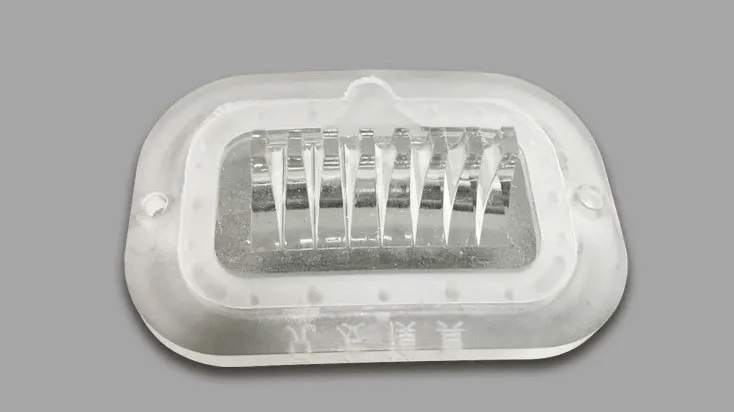 此方案中,震雄采用标杆旗舰注塑机MK6 PRO,塑化更均匀、剪切热更低,产品不发黄、无黑点、无水丝,透光率高,能确保光学透镜高质量生产,并且大大提升生产效率。