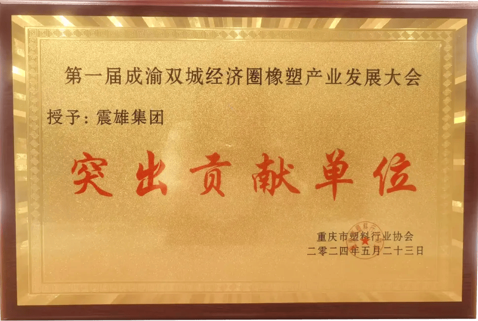 成渝和中西部片区是震雄的重点市场领域,震雄在当地品牌优势突出。会上,震雄集团被授予“突出贡献单位”荣誉称号,彰显出震雄从技术共享、产品开发、体系建设等多维度深度参与成渝双城经济圈橡塑产业共建,并取得了杰出成果。