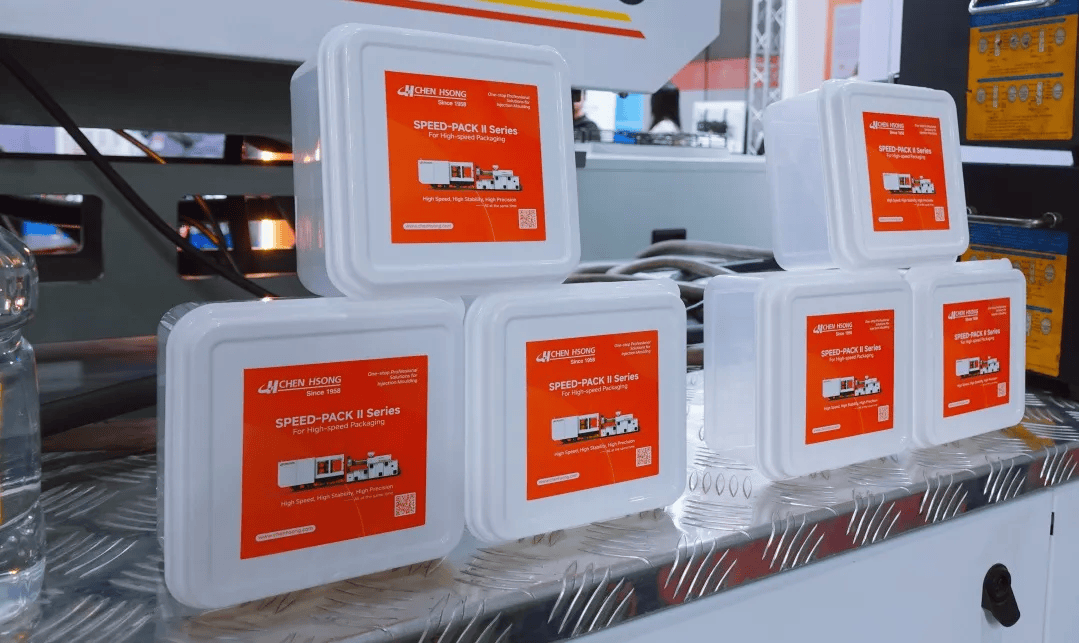 MK6.6/A伺服液压注塑机搭配高性能专用电脑,专利高刚性模板、出众的机铰设计以及适合大部分材料及混炼要求的专业螺杆。现场带来了保鲜盒注塑成型解决方案的生产演示。