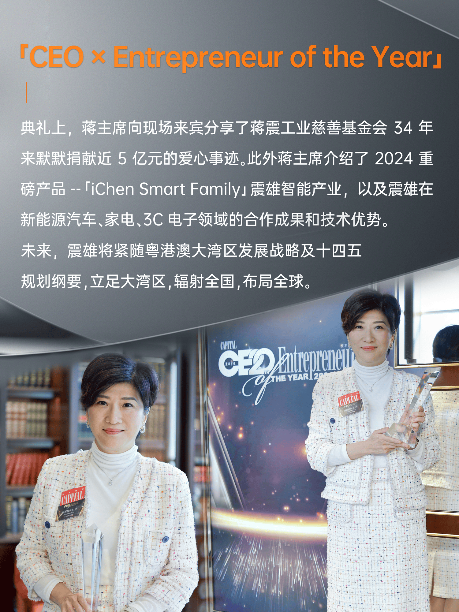 震雄集团主席兼总裁蒋丽婉女士荣获「年度杰出企业家大奖 2024」