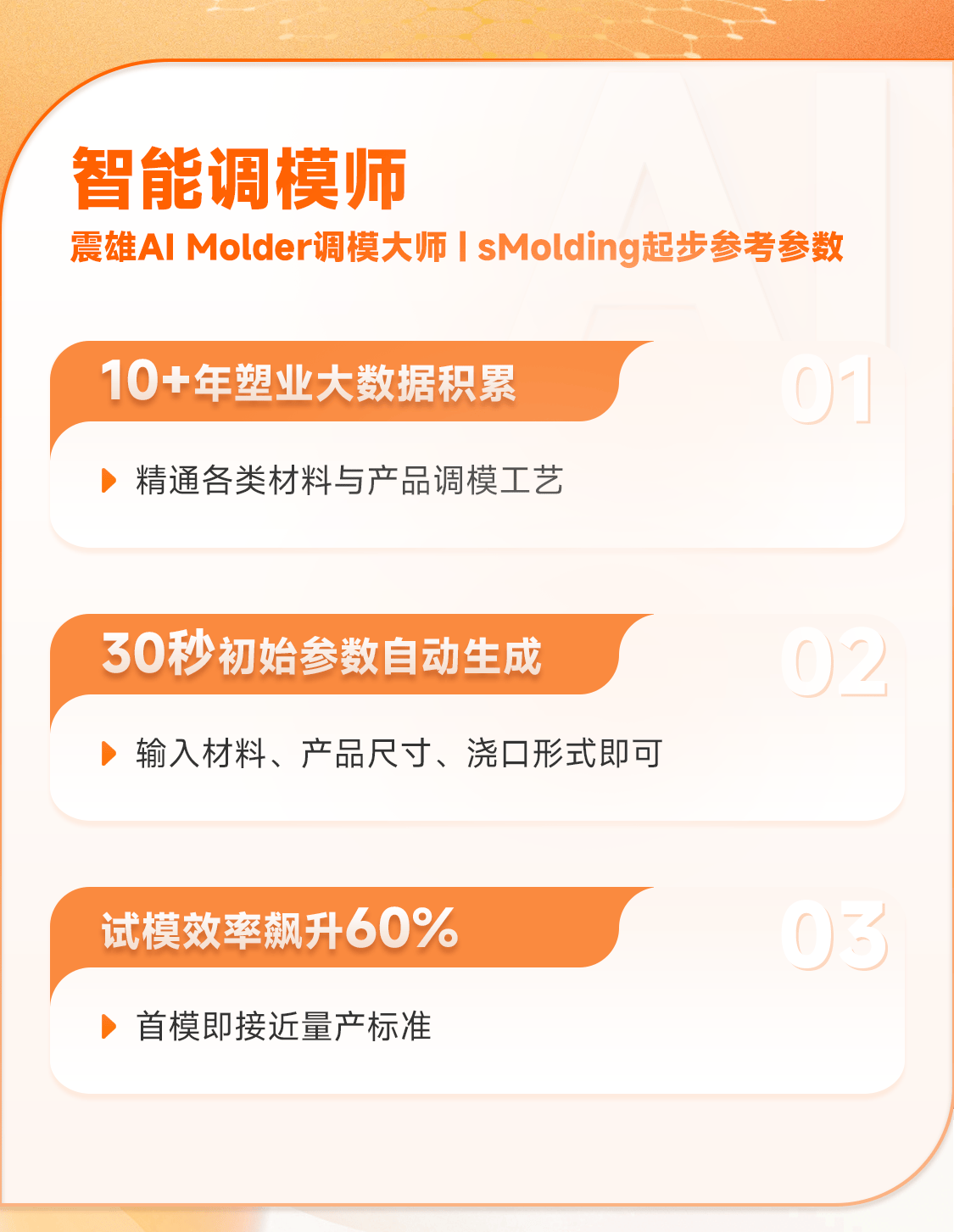 零经验操作: 仅需输入基础产品信息,系统智能适配参数,减少试模次数高达60%-80%,大幅降低材料浪费。