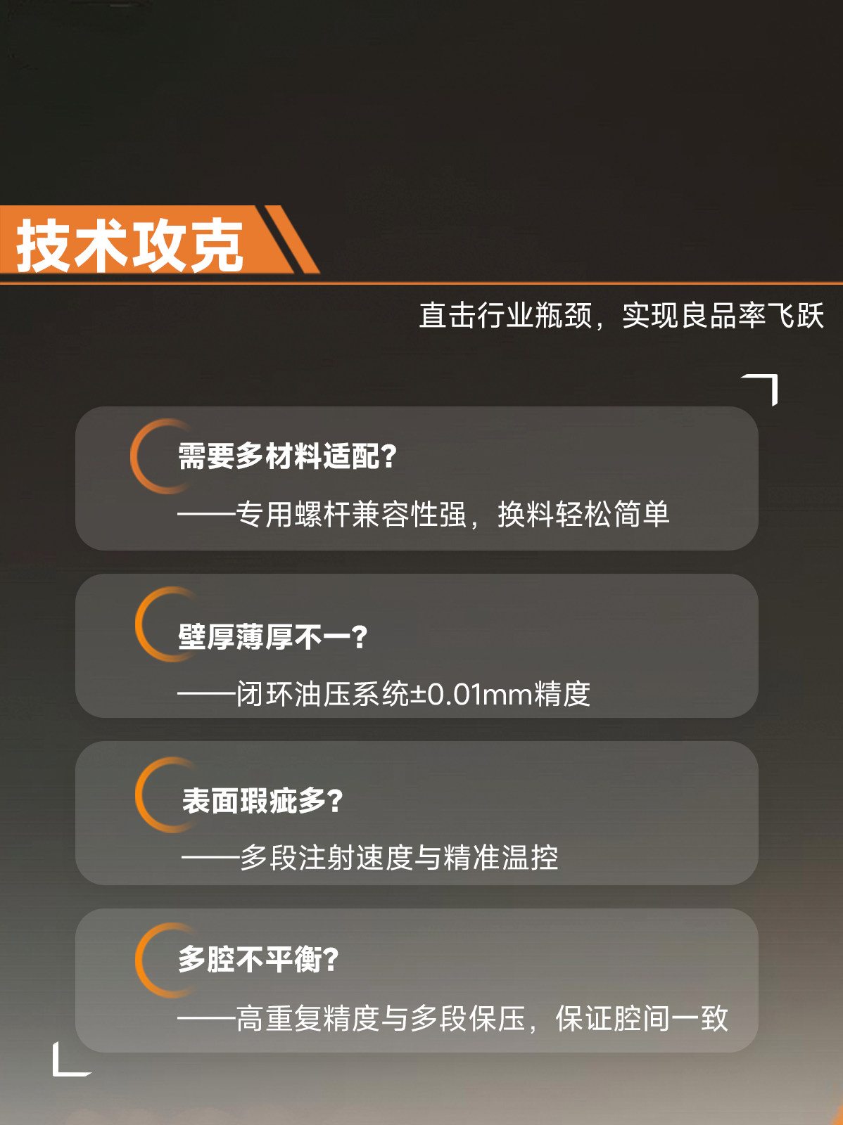 - 智能锁模系统,像猎豹捕食般精准消除飞边毛刺;