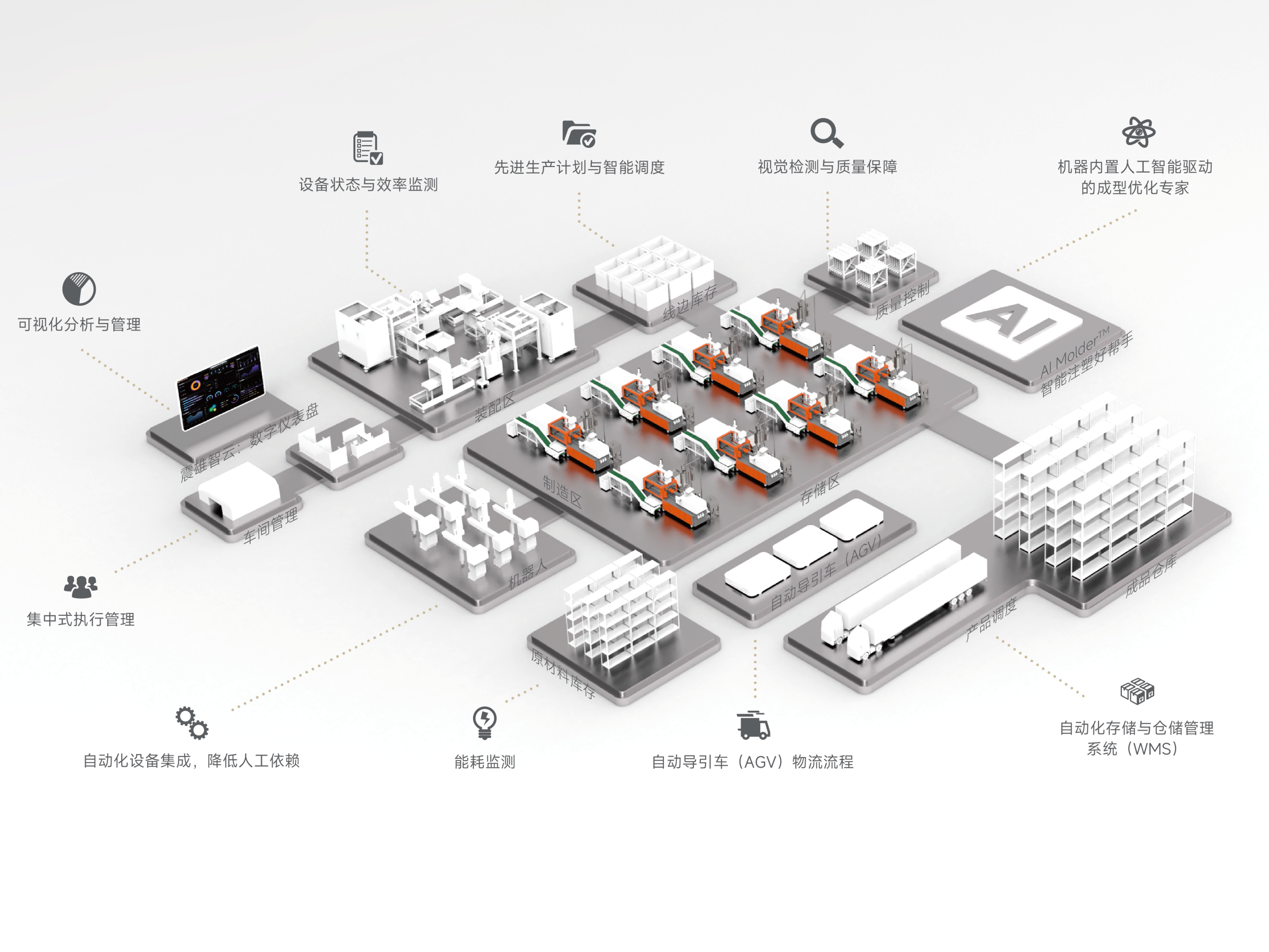 竞争已超越机器本身,转变为“设备互联 + 智能运营系统(MES/APS/QMS等)+ AI工艺”的全栈式打包服务。只有实现系统性协同,才能将生产现场真正管理起来、深度优化。