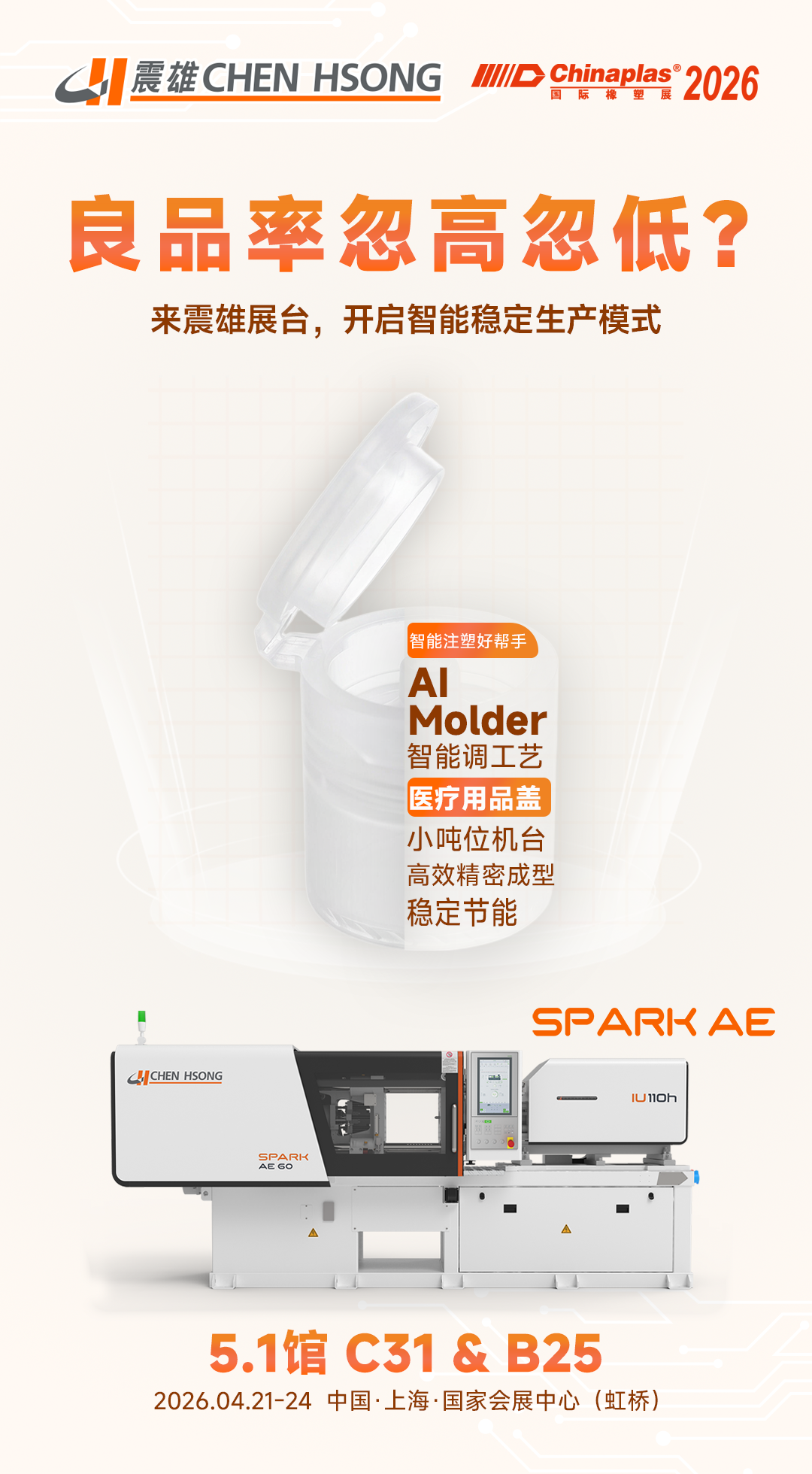 CHINAPLAS 2026|震雄史上最大展位:6大工艺方案+AI智能注塑深度解析,诚邀您共探塑业技术未来