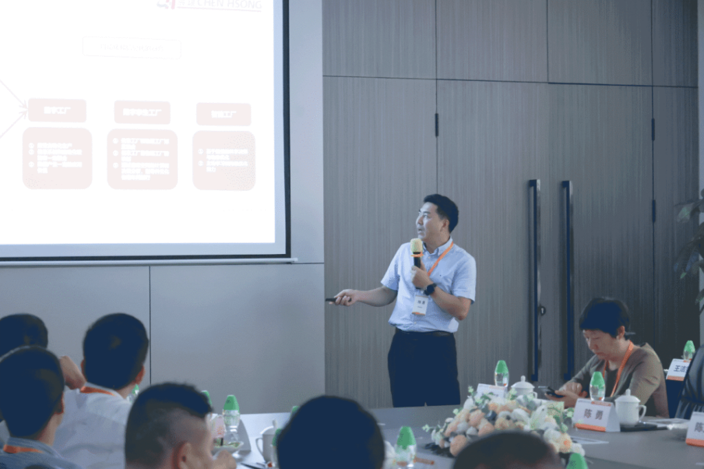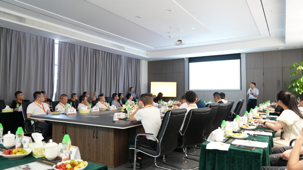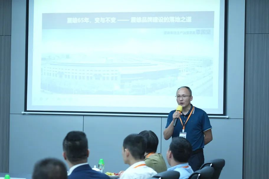 震雄集团中国生产运营总监覃国坚在会上与大家详细介绍了企业文化、发展历程、创始人蒋震博士的生平故事和家国情怀,让考察团对震雄集团有了更全面的了解与认识。