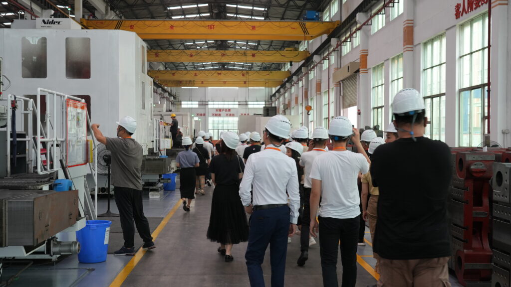 在覃国坚总监的专业讲解下,考察团一行在震雄生产制造基地,近距离感受业界领先的智能产线、先进加工生产设备和前沿制造技术。考察团纷纷表示,对震雄集团强大完善的生产流程和质量控制体系有了更加直观的认识,并竖起了大拇指。