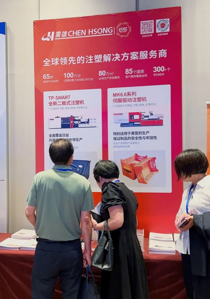 本次会议由山西省塑料行业协会主办,震雄集团受邀参与了本次盛会,携在果筐及新能源汽车领域积累多年的硬核技术和一体化注塑成型解决方案亮相。