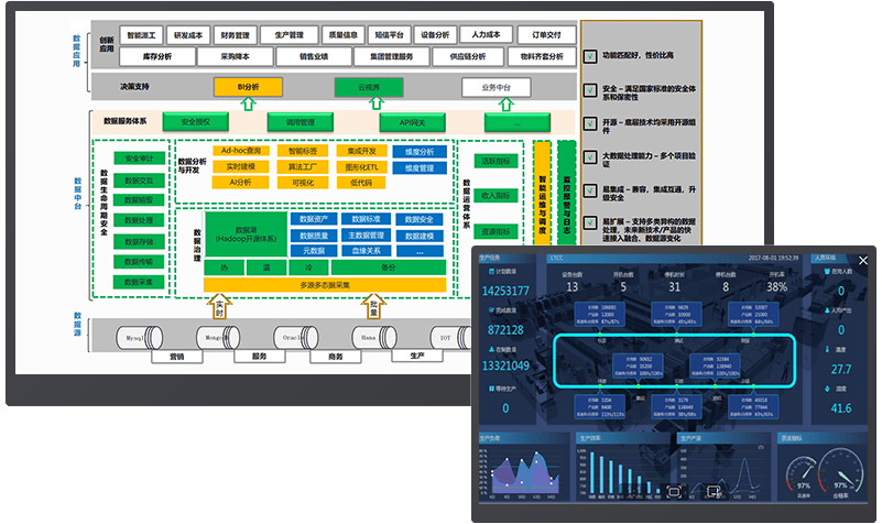 基于“看的见、看的清、看的远、管的住”理念,融合IT和OT数据,构建公司业务运营管控平台,实现用数字说话、用数字管理、用数字赋能。采用自顶向下的方式,通过对公司各业务主题域信息的提炼和汇总,让公司及各部门领导实时对企业战略执行情况进行监控。当公司及各部门领导发现问题时,可通过数据分解、追溯的方式深入到相关主题域,找对问题发生的根源并制定问题处置策略及风险预控方案,跟踪问题及风险的处理过程,直至影响战略达成的问题风险消除。