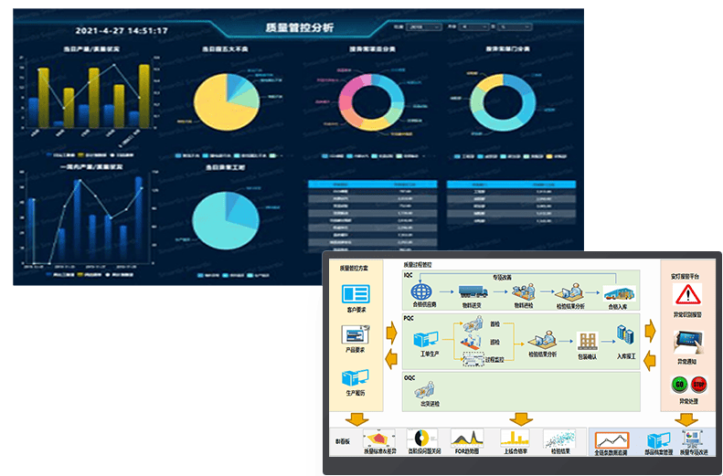质量管理(QMS)可与加工过程紧密结合、控制检验流程,防止质检遗漏,记录质量问题,后续可随时进行追溯。通过曲线图、直方图、帕累托图等方式直观地分析自动化设备的连续化程度,确保自动化设备按照预先设定好的工程参数执行工作。控制质量事故处理流程,通过返工、返修、报废等处理操作,统计质量事故并进行专项改善。