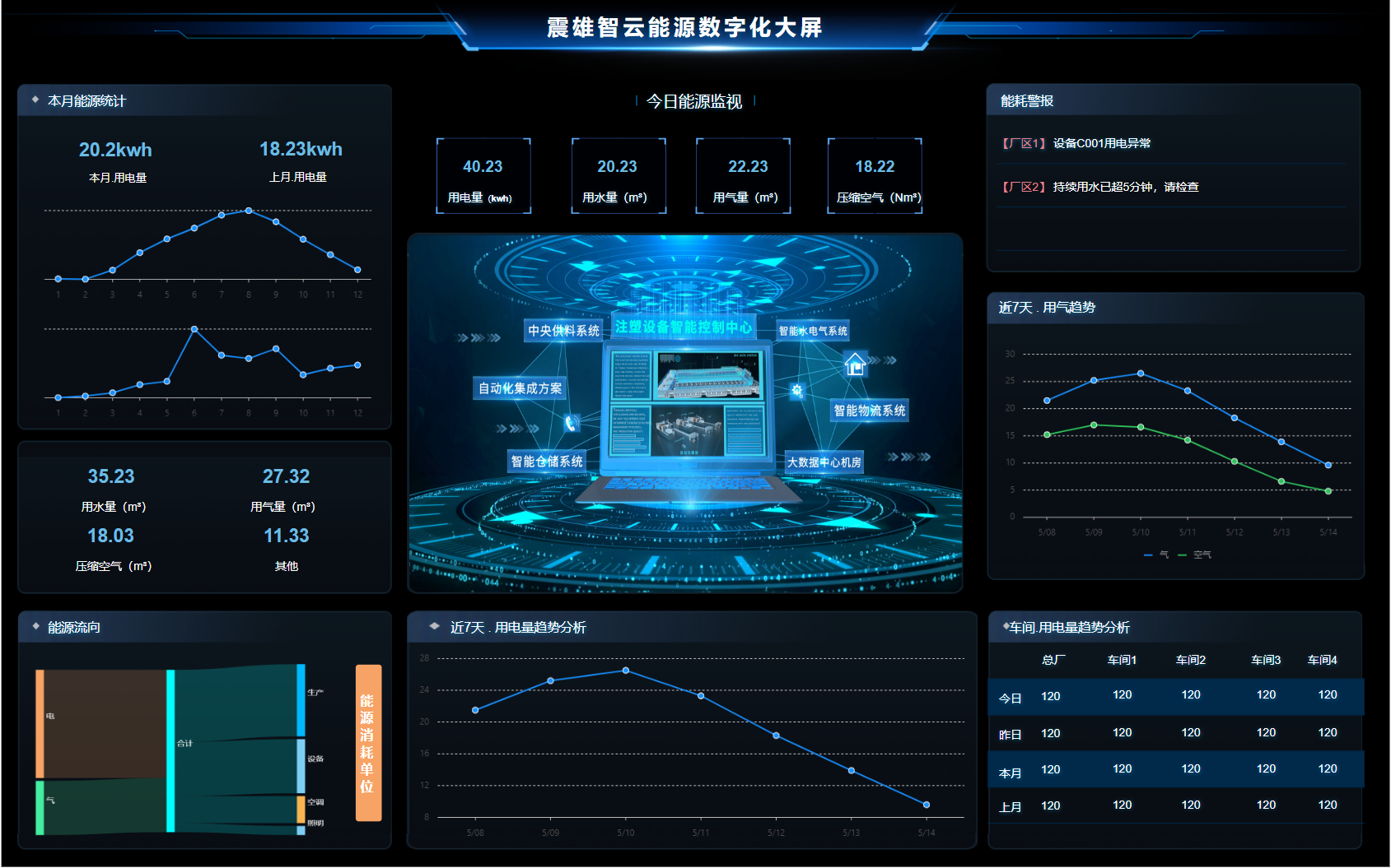 能源管理(EMS)实现制造工厂厂务能耗数据的采集、存储、统计分析、节能诊断、优化控制和综合管理。在各系统稳定运行的前提下,减少能源消耗,提高能源利用率。建设一套能源消耗可视、能源消耗可知、能源使用可控的智能化能源管理系统。建立能源体系行业标准,实现综合能源服务平台、能源业务创新平台,推进节能减排的科学管理。